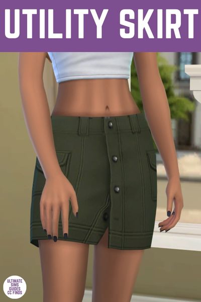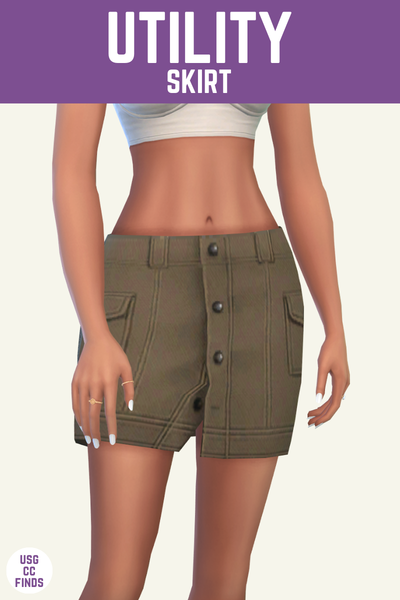 This utility skirt is a fun vibe that I’d never be choosing in real life, but love to dress my sims like. This one is fun because it takes a pair of utility pants that you may wear to work and takes that vibe into a mini-skirt.