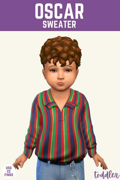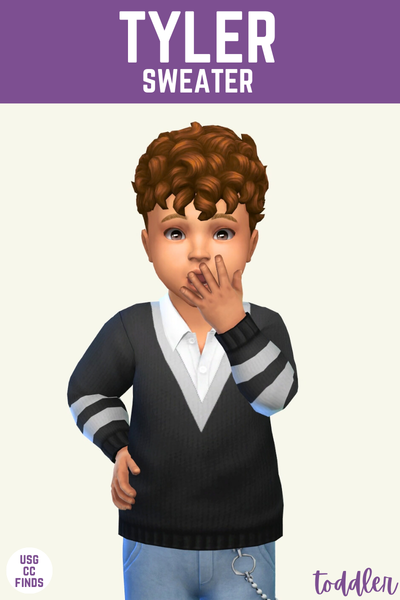 I really enjoy putting my toddlers in adult clothes in my game because I think it’s adorable, and this is such a mature look. This has a v-neck sweater with fun stripes on the arms with a button up shirt underneath.