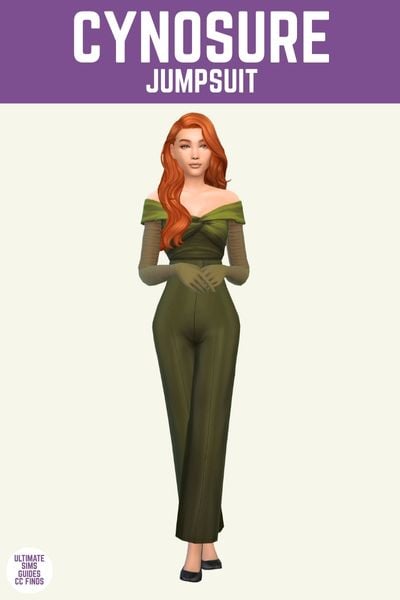 This jumpsuit is so incredibly gorgeous and makes sims look beautiful no matter what. It has an off the shoulder look with long sleeves that have gloves!
