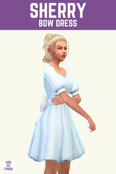 The final item in this set is a really beautiful formal dress with the same puff sleeves and a beautiful pleated skirt. It has a belt around the waist that ends with a huge bow at the back that gives the dress a youthful feel and makes it perfect for teens! Imagine this for prom!