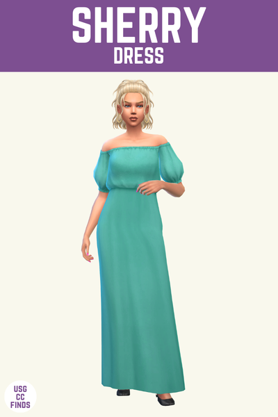 The Sherry dress is an off the shoulder dress with short sleeves. The best part of this dress is the beautiful pearl belt around the waist. Like, c’mon that’s just so beautiful.