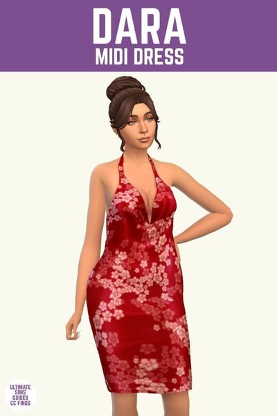 There are three versions of this dress in this set with a midi, maxi and mini version to choose from. This midi version goes to above the sim’s knee and comes in some really beautiful colours.