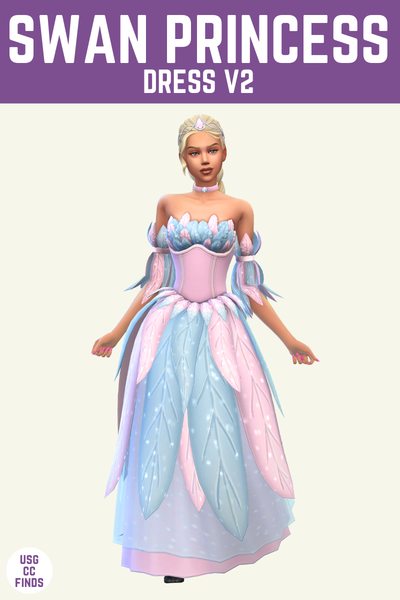 The Swan Princess dress is one of the prettiest things I’ve ever seen for The Sims 4. It has a gorgeous feather look in the bust and the dress and just has so much going for it and a gorgeous sparkly texture.