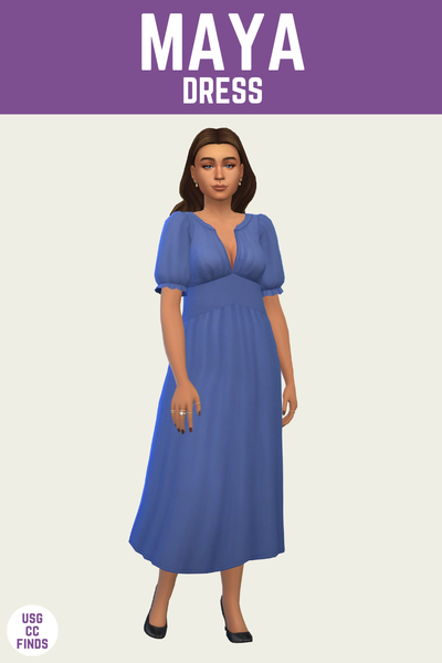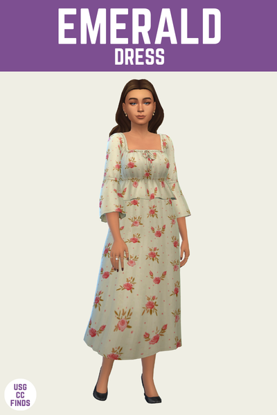 This dress is really sweet with an adorable rose design and fun puff sleeves that go down to the elbow. I love dresses like this for a stay at home mom, because IRL moms are not dressing like this so its fun to do it in the game.