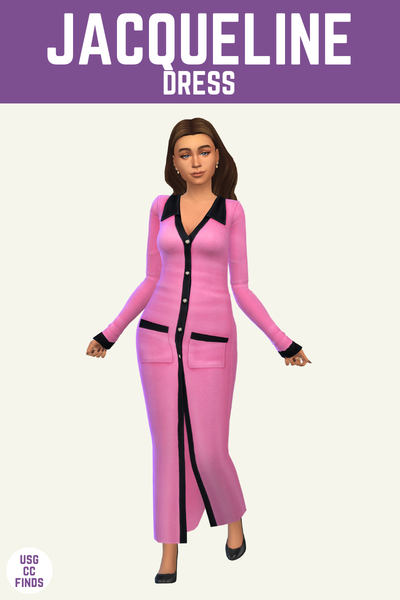 This dress is so fabulous and makes your sims look so beautiful. I love the buttons going down the front and the houndstooth swatch is my absolute favourite.